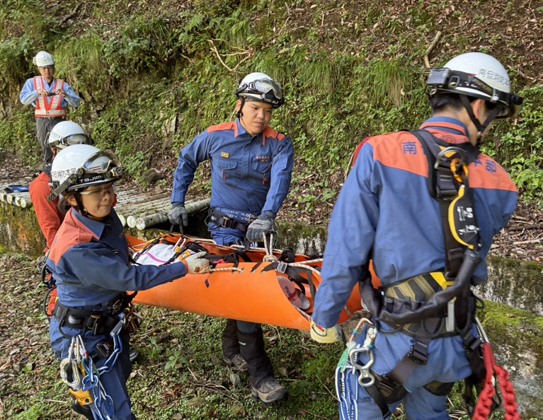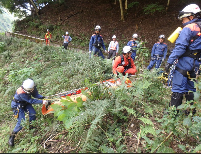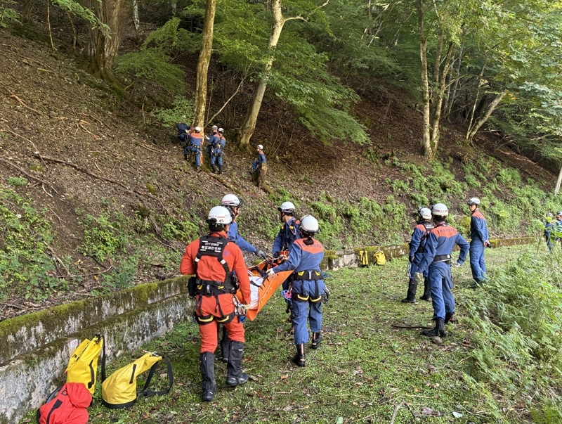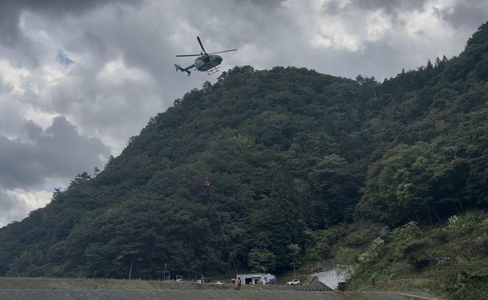 作業中に体調不良を訴え動けなくなった傷病者を、防災ヘリと連携して